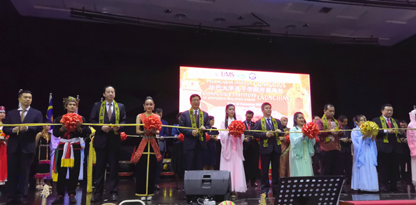 随后进行了剪彩仪式,沙巴大学孔子学院正式宣告成立。由当地著名华校崇正中学带来的二十四节令鼓表演和舞狮表演让现场气氛一片热烈,为仪式增添了一道亮丽的风景,也是孔院吸引当地民众走近中国文化而发出的诚挚邀请。
