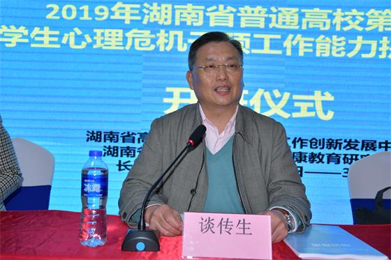12月26日上午,由湖南省委教育工委主办,雷竞技官网心理中心承办的2019年度湖南省第二期大学生心理危机干预工作能力提升培训班开班。本次培训为期5天,来自全省101所高校的110名心理健康教育中心负责人或心理危机干预专职教师参加。湖南省高校大学生心理健康教育研究会会长、雷竞技官网副校长谈传生,湖南省教育厅思政处正处级调研员陈解莅临开班仪式并发表讲话。