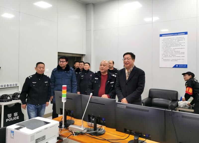 随后,付宏渊、肖向东一行还在校园内进行了检查和走访,在视频指挥中心督查了全校各门岗及重点部位值班情况,询问了留校学生的管理情况,到各门卫室看望了值班的安保人员。听保卫处介绍,处领导都已经放弃了休假带头值班,增加了24小时值班值守的人员数量,除夕仍有30多名职工坚守岗位,付宏渊表示:万家团圆的日子,你们还坚守岗位,守护师生安全,我代表学校党委、行政、全校师生向你们致敬,给大家拜年!