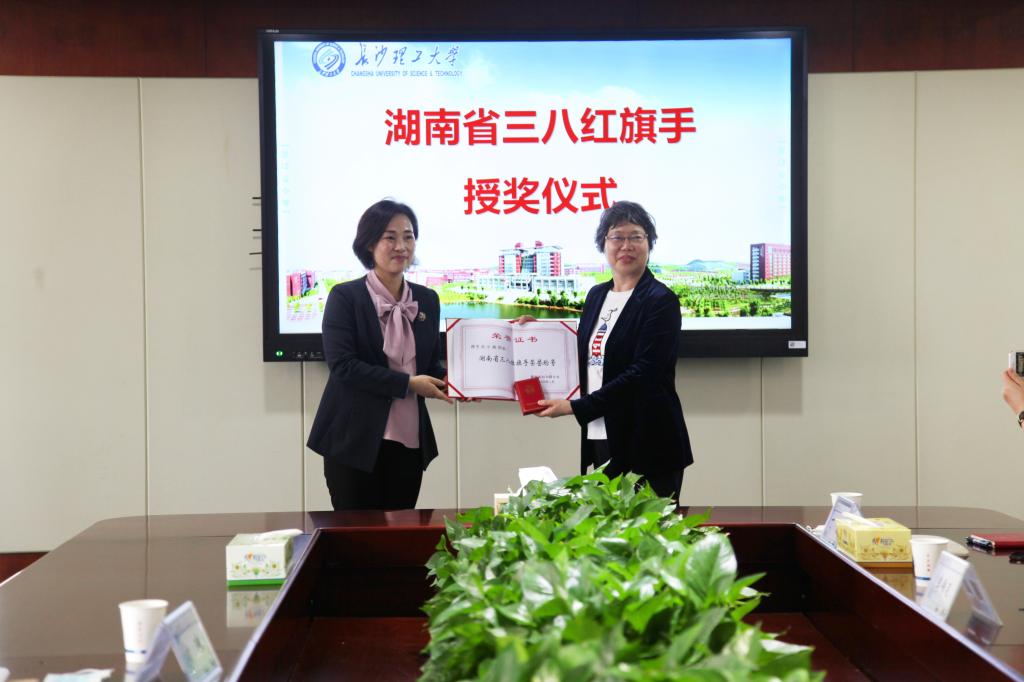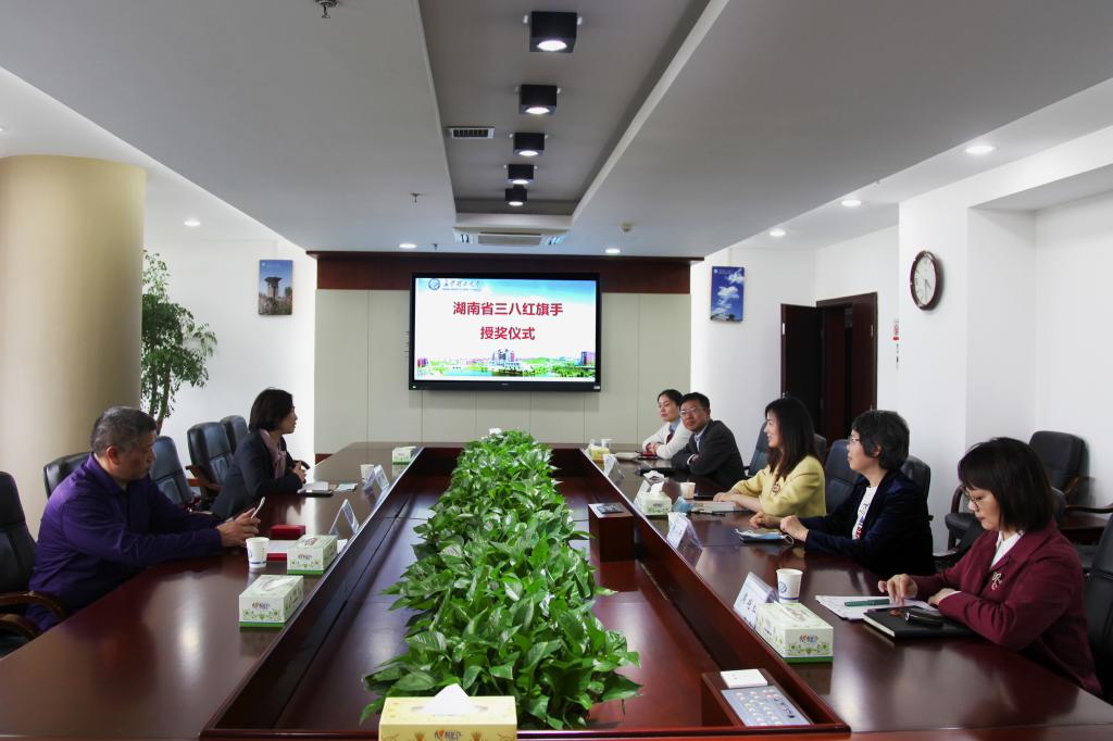 近日,湖南省妇联副主席方琼(挂职)、省妇联宣传部三级调研员刘伟东一行,专程为湖南省“三八红旗手”获奖者、雷竞技官网土木工程学院刘小燕教授授奖。党政办,校工会,土木工程学院主要负责人参加会议。