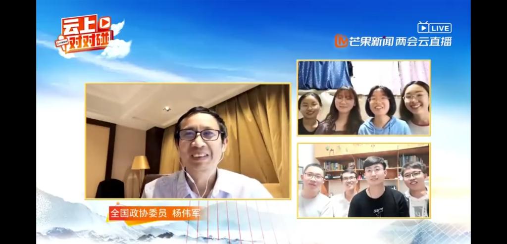 同学们先后进入直播间,并一一作了自我介绍。杨伟军表达了对同学们的想念和关心,向同学们介绍了此次“两会”的部分会议安排。