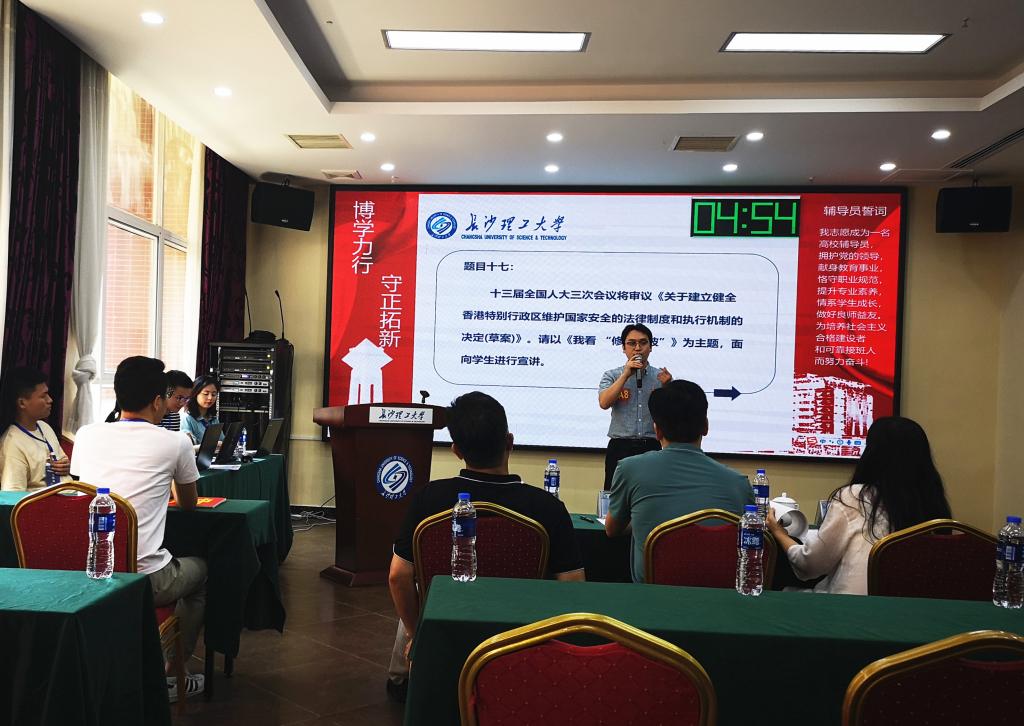 今年2月,学生工作部结合全国和湖南省辅导员素质能力大赛比赛设置,制定并下发了《2020年辅导员素质能力大赛方案》。大赛分预赛和决赛两个阶段。6月1日,一线辅导员参加了预赛选拔,通过笔试、按图索骥、鱼目混珠、描述定位等四个环节的激烈角逐,设计艺术学院程静征等22名选手进入决赛。