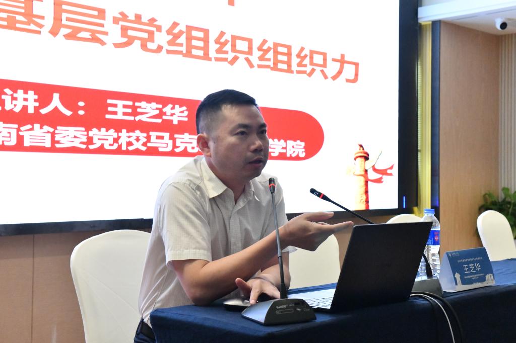 中共湖南省委党校马克思主义学院王芝华教授以《不断提升新时代高校基层党组织组织力》为题,围绕基层党组织组织力的重要作用、面临问题等进行分析,提出了提升策略和路径。