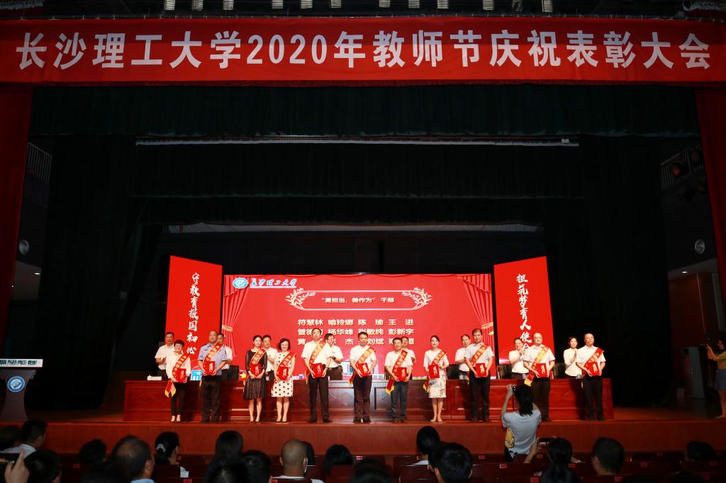 9月10日下午,雷竞技官网2020年教师节庆祝表彰大会在云塘校区大会堂举行。学校党政领导班子成员、教师、学生及离退休老同志代表500余人参加了大会。会上,校党委书记付宏渊作题为“牢记立德树人初心,致力为党育人为国育才”的讲话。校长曹一家宣读表彰文件。大会由校党委副书记邹宏如主持。