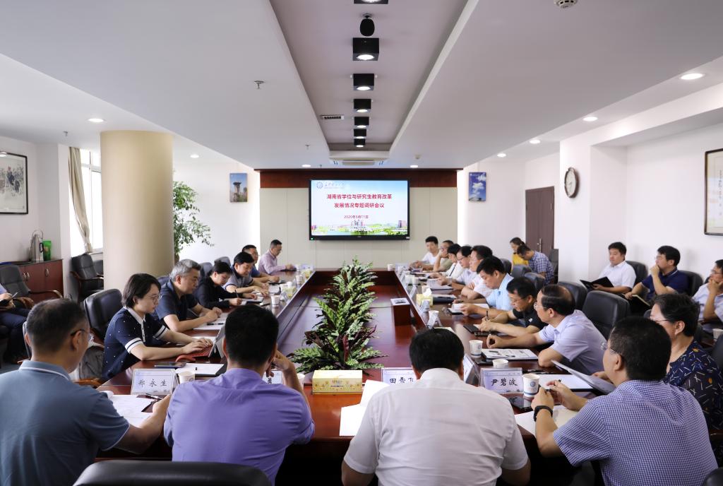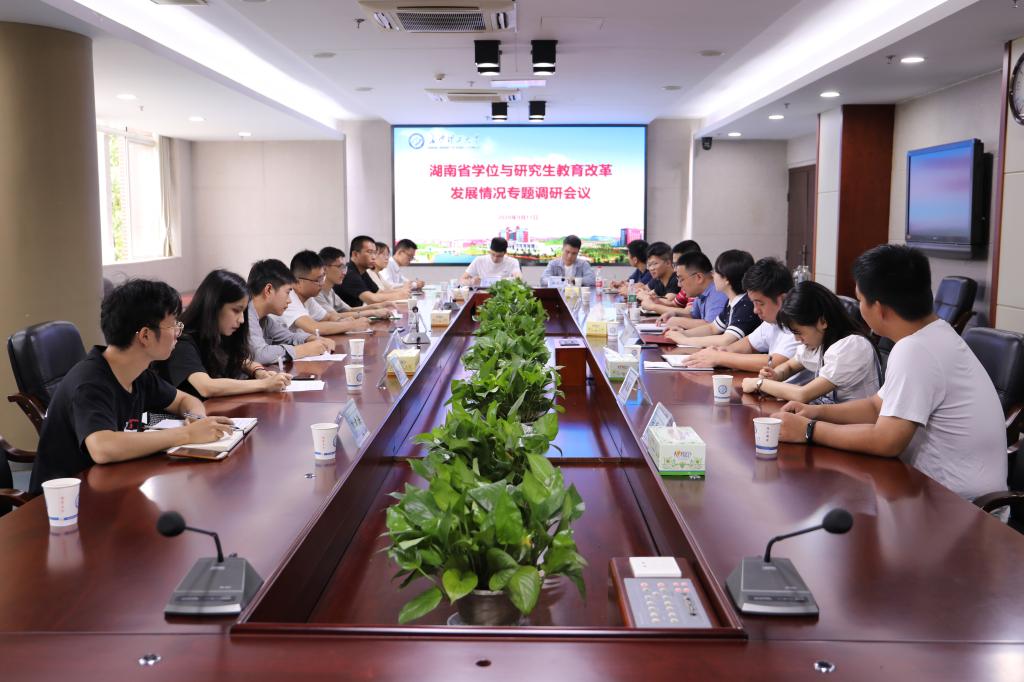 为全面摸底我省学位与研究生教育发展现状,认真总结“十三五”学位与研究生教育发展成就,客观分析当前面临的困难和问题,研究提出加快推进我省学位与研究生教育高质量发展的具体举措,9月11日上午,湖南省教育厅二级巡视员左清、学位管理与研究生教育处调研员唐利斌等来雷竞技官网,在一办五楼会议室开展湖南省学位与研究生教育改革发展情况专题调研,湖南中医药大学、湖南工商大学与雷竞技官网主管学位与研究生教育工作负责人,研究生院(处、部)长、财务、学科、规划等相关职能部门负责人,部分培养学院院长参加专题调研。会议由唐利斌主持。