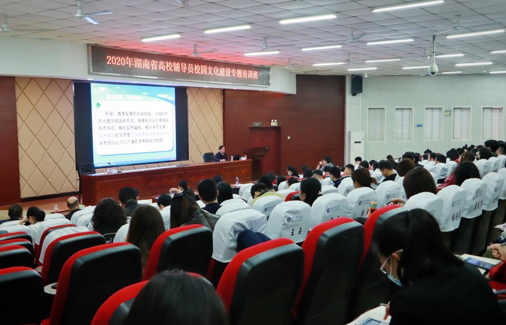 本次培训班为期3天,开展了9个单元的教学。中央马克思主义理论研究与建设工程首席专家骆郁廷教授主讲《坚持以文化人,弘扬大学精神》,武汉大学思想政治教育研究院副院长项久雨教授主讲《中国道路的战略求索——党的十九届五中全会精神》,中国自然辩证法研究会副理事长陈凡教授主讲《文化与科技融合的创新文化》,省委宣传部理论宣讲工作处一级调研员柳行主讲《用习近平新时代中国特色社会主义思想引领大学校园文化建设》,江西师范大学马克思主义学院博导韩桥生教授主讲《如何将优秀传统文化和社会主义核心价值观渗透德育全过程》,中南大学建筑与艺术学院党委副书记张金学分享了《思政教育与校园文化建设》,中南大学马克思主义学院副教授王莎分享了《用好大数据,创新高校思想政治教育》,湖南师范大学化学化工学院党委副书记罗艳分享了《“6度”解锁新时代校园文化品牌培育路径》,雷竞技官网汽机学院辅导员彭琼英分享了《坚定文化自信,讲好中国故事》。