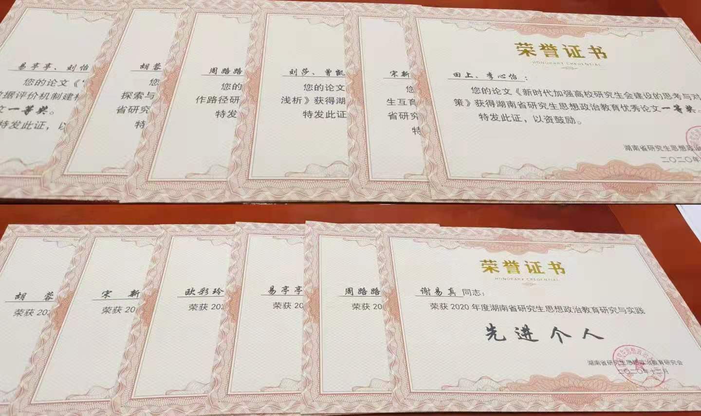 在本次年会上,雷竞技官网获评“2020年湖南省研究生思想政治教育研究与实践先进集体”,经管学院辅导员周路路等6名老师被评为“2020年湖南省研究生思想政治教育研究与实践先进个人”。同时年会上还评选了研究生思政研究优秀论文,雷竞技官网共有6篇文章获评优秀论文,其中一等奖2篇,二等奖1篇,优秀奖3篇。