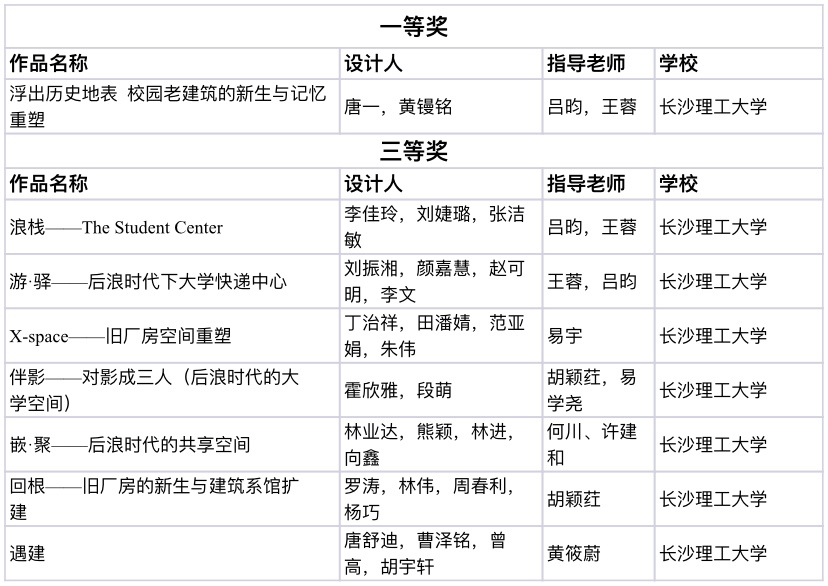 本次竞赛由湖南省教育厅主办,中南大学承办,以“后浪时代的大学空间”为题,旨在考察同学们以校园空间的建设者与参与者的身份,如何批判性思考大学校园空间需求的本质,技术与人的关系,又如何以设计思维和技术手段去解决现实社会与生态问题,并面向未来。