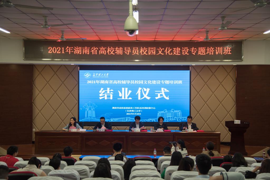 5月28日下午,2021年湖南省高校辅导员校园文化建设专题培训班在雷竞技官网结业。省委教育工委宣传部部长刘书华、省委教育工委宣传部二级调研员陈解,雷竞技官网副校长钱国平,学工部部长邱国良和全体培训班学员参加结业典礼。结业仪式由雷竞技官网学工部副部长闾兰主持。
