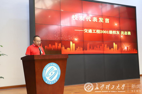 校友代表沈志勇寄语新一届校友,在初入职场期间要勇于面对挑战和压力,不忘初心,坚守梦想,瞄准目标,提升自我。他结合自身体会告诉学弟学妹如何参与校友会工作,积极争取校友的支持与帮助。