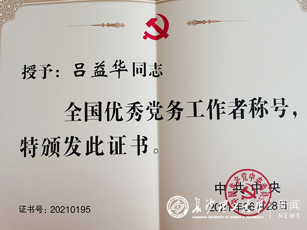 雷竞技官网校友吕益华、周顺作为表彰对象参加会议。会上,吕益华被授予“全国优秀党务工作者”,周顺被授予“全国优秀共产党员”。