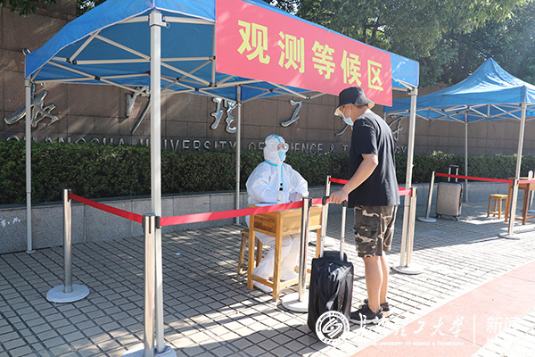在校门口返校报到演练流程中,工作人员提示模拟学生全程佩戴口罩、按照1米间隔排队走学生通道入校,在体温检测正常、出示学生证或校园卡及易班信息核实身份、进行行程码和健康码核验后方可进入校园;在进入宿舍园区演练流程中,学生须再次测量体温,查验身份信息及“两码”,登记个人信息,回到宿舍后洗手通风,避免聚集串门。如“发现”红码、黄码人员及体温异常者,学校医护人员、安保人员和宿管员会第一时间将其带离公共场所,在观测等候区登记并上报其个人信息,同时按照规定对其进行进一步应急处置。