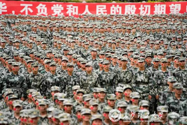 随后,分列式在慷慨激昂的阅兵进行曲中进行。来自18个学院的91个新生方队和教官方队依次通过主席台,他们军姿严整、步伐雄健、士气高昂,展现出新时代大学生朝气蓬勃、意气风发的精神风貌。