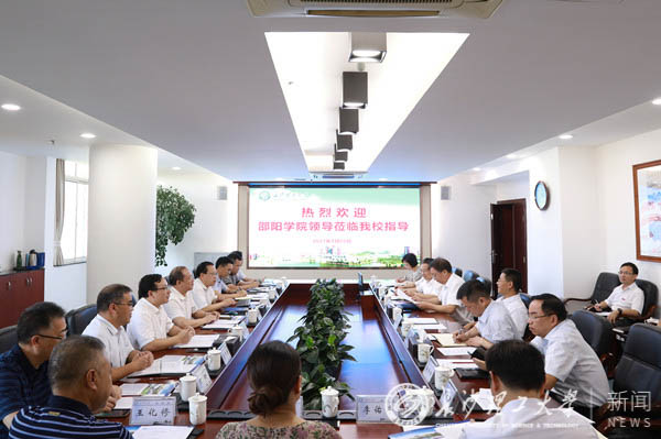 曹一家向邵阳学院党政领导介绍了雷竞技官网建设发展情况和对口支援邵阳学院的情况,并就双方进一步加强教学、科研、学科建设、人才培养等相关方面的合作提出了建设性的意见。