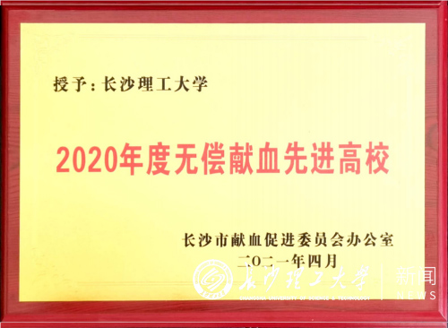 近日,驻长高等院校无偿献血表彰会议在湖南宾馆召开,学校被湖南省卫生健康委员会、湖南省教育厅评为“2019-2020年度湖南省高校无偿献血先进单位”,被长沙市献血促进委员会评为“2020年度无偿献血先进高校”。