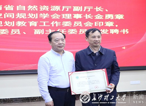 湖南省国土空间规划学会副秘书长杨春宣读了《关于学会2021年增设专业(工作)委员会组成人员的通告》。大会分别为教工委主任委员、副主任委员、委员颁发聘书。长沙理工大学为教育工作委员会主任委员单位。杨伟军教授被聘为教育工作委员会第一届主任委员。
