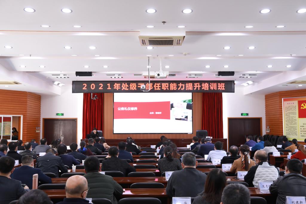“要知晓公务礼仪,自觉做公务礼仪的践行者、推动者和引领者……”11月12日下午,副校长蒋璟萍为学校2021年处级干部培训班主讲《公务礼仪修养》专题讲座,要求全体与会人员牢固树立“人人都代表长理形象”的意识,不断增强公务礼仪认知和公务礼仪的基本规则及其应用,全面夯实管理服务形象。培训班由党委组织部常务副部长陈曦主持。