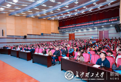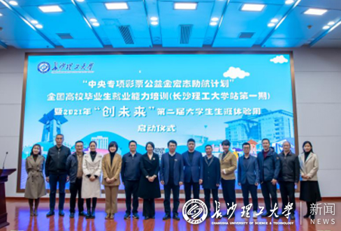 11月23日,“中央专项彩票公益金宏志助航计划”全国高校毕业生就业能力培训(长沙理工大学站)暨第二届“创未来”生涯体验周启动仪式在云塘校区图书馆报告厅顺利举行。副校长钱国平,省教育厅学生处副处长颜慧林,省大中专学校学生信息咨询与就业中心副主任李昌维,中交一公局、中建五局、中铁五局、中广核新能源等企业代表,导师代表参加启动仪式,2500名学生同时参与图书馆东坪举行的“职业生涯活动周”。