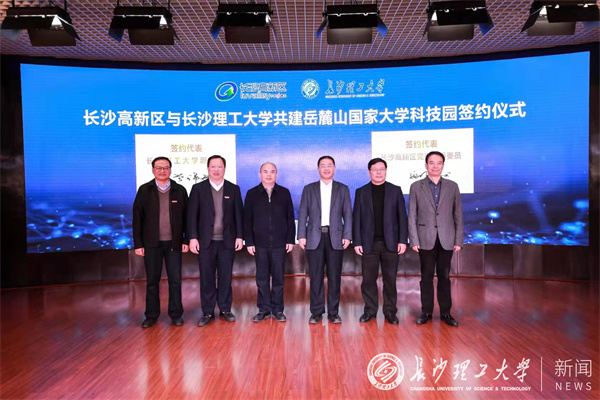 签约仪式上,长沙高新区党工委委员李平波代表长沙高新区与长沙理工大学副校长曾祥君签署《长沙高新区与长沙理工大学共建岳麓山国家大学科技园合作协议》。