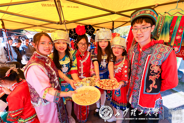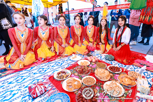 活动现场,师生以游园会的方式,在参观和享受民族文化饕餮盛宴的同时,切身感受各种做工精致的乐器所带来的唯美音色。苗族和土家族的民族村,帐篷前排着整齐的队伍,简单的服饰里藏着绝美独特的手工刺绣;侗族的特色卷饼,藏族的牦牛肉干、青稞,哈萨克族的塔米尔、熏马肠,维吾尔族的烤全羊、撒子以及各民族学生的民族服饰、挂毯、手工艺品、碉房等,都展现了各自浓厚的民族风采,也让各族学生感受到不一样的民族文化。