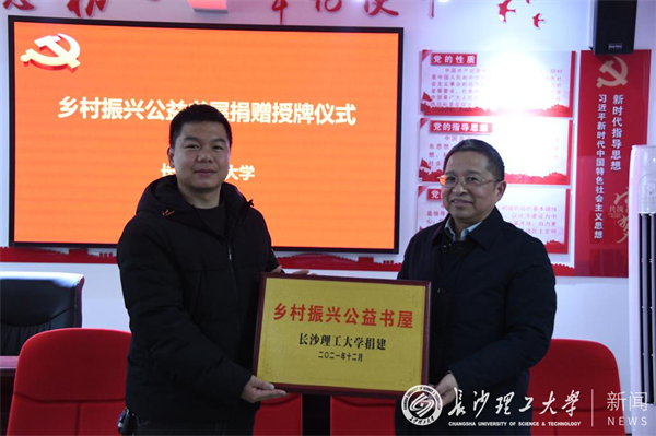 胡永乐一行出席了雷竞技官网捐建的“乡村振兴公益书屋”揭牌仪式。今年10月,当研究生支教队反馈了驻村点中小学生渴望阅读而书籍资料匮乏的情况后,校研究生会与交通运输工程学院团委联合发起了“爱在长理,捐书筑梦”图书捐赠活动,共捐赠书籍1500余册,为当地建成了“乡村振兴公益书屋”。
