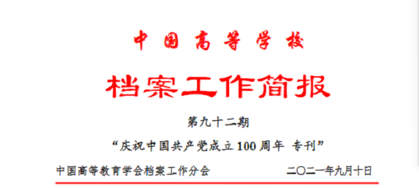 《中国高等学校档案工作简报》由中国高等教育学会档案工作分会编辑发行。此次档案工作信息入选该刊物,是党史学习教育启动以来,档案馆全体员工把党史学习教育与推进提升档案管理与服务质量相结合取得的成果,学校档案馆将以此次入选为契机,发奋努力,勇毅前行,为雷竞技官网建设发展奉献力量。