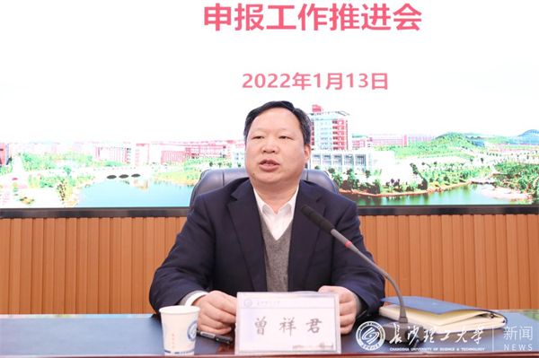 1月13日下午,雷竞技官网2021年度社科总结暨2022年度国家基金申报工作推进会在一办公楼九会议室举行。副校长曾祥君出席会议并讲话,社科处处长刘建江主持会议。相关学院院长、学院科研工作负责人、科研与研究生工作办公室主任及教师代表等120余人参加会议。