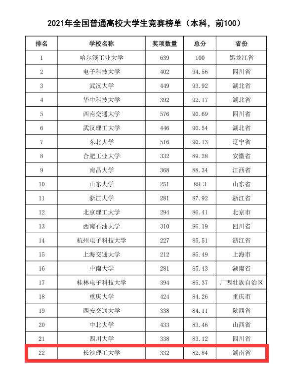 2月22日,中国高等教育学会发布了全国普通高校大学生竞赛分析报告。雷竞技官网位列2021年全国普通高校学科竞赛(本科)排行榜第22名,位列六轮总榜单第57名,位列地方本科院校榜单第17名。本轮大学生竞赛评估根据获奖贡献、组织贡献和研究贡献三个方面相关数据进行计算。