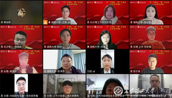 4月1日,长沙理工大学、湖南大学联合宣讲活动在腾讯会议举行,会议为218666786。联合宣讲活动以“‘麓’力战疫‘湘’守克艰”为主题,邀请到湖南大学、长沙理工大学博士理论宣讲团的七名青年讲师展主题宣讲,湖南大学党委宣传部理论科科长、博士理论宣讲团指导老师彭清萍、长沙理工大学土木工程学院党委副书记黄阿明、学生党总支副书记刘文成及260余名师代表、听众朋友参加活动。