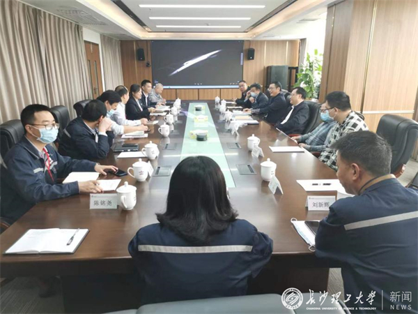 刘朝晖介绍了学校情况,强调学校积极服务湖南“三高四新”战略定位和使命任务,主动对接企业需求,希望相关学院围绕公司技术攻关需求有所作为。