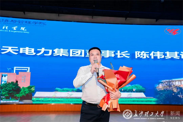陈伟其感谢学校对湘能楚天奖教奖学金项目的大力支持,并介绍了设立“湘能楚天奖教奖学基金”的初衷,回顾了自己的创业经历,介绍了集团的发展,表示希望在新能源市场大爆发的新时代,集团能和长沙理工大学携手,从科研、人才培养等方面进行更为广泛而深入的合作,抢抓发展机遇,共同阔步前行。