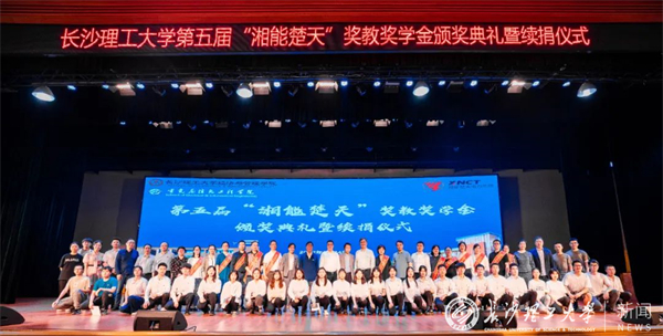5月24日下午,长沙理工大学第五届“湘能楚天”奖教奖学金颁奖典礼暨教育基金续捐仪式在金盆岭校区五教大礼堂举行。副校长谈传生,湘能楚天电力集团董事长陈伟其,人力资源总监、上市筹备办公室主任冯艳云等出席。校属有关单位负责人以及师生代表参加。
