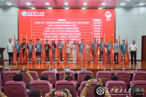 随后,胡永乐等与会领导为49支暑期专业实践团队进行了授旗。