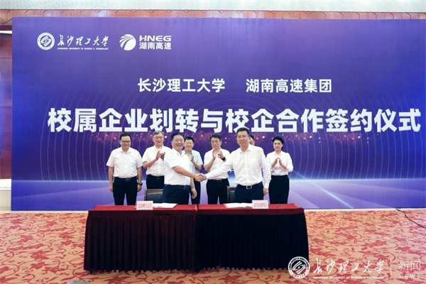 曹一家表示,此次划转的七家校属企业曾为学校发展作出了不可磨灭的重大贡献。在落实中央、省委关于高校所属企业体制改革的过程中,双方经过友好磋商,不断增进了解加深感情,今天终于“幸福牵手”。未来,学校将扎实推进合作协议的全面落实,在实验室(研究中心)共建、高速公路建管养技术研究、重大科技项目攻关、未来前沿技术研究、产学研用深度融合创新体系构建等领域与湖南高速集团持续深化合作,推动双方关系迈向新高度,在合作共赢中实现校企双方高质量发展,为湖南交通事业的发展、现代化新湖南的建设与“交通强国”战略的推进贡献更大力量。