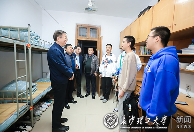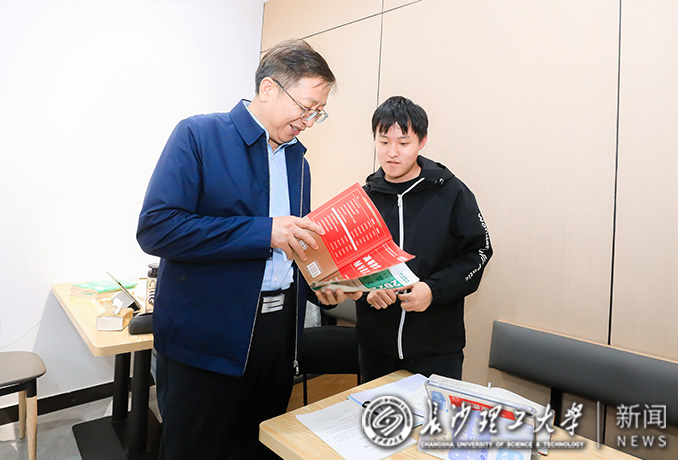 来到行健轩3栋A311宿舍,付宏渊书记与材料学院彭博扬等4名大一新生亲切交谈,了解新生对大学的期盼和感受。当听到同学们表示“长沙理工大学就是我们想象中的大学”时,付宏渊书记鼓励同学们要不负韶华,平时要多读书、勤思考,有时间可以去“三全育人”教育基地现场学习。在A321宿舍,付宏渊书记与材料学院2021级材料专业邹颐乐等3名同学聊起了专业学习。“你们的课平时多不多”“学习上还有哪些困难”“辅导员、班主任平时来宿舍多不多”付宏渊书记认真查看了同学们的课表,并拿起课本《工程制图》仔细翻阅,鼓励同学们要坚定学习信心,掌握学习技巧,既要深读专业书,但更要多读课外书增加知识的广度,在多读书善读书中提高自我。当听到有些同学们反映有些课程学习还是有一定难度时,付宏渊书记当即拨打了材料学院主要负责人的电话,详细询问课程教材安排等有关情况,要求学院高度重视人才培养,及时了解学生的学习情况。