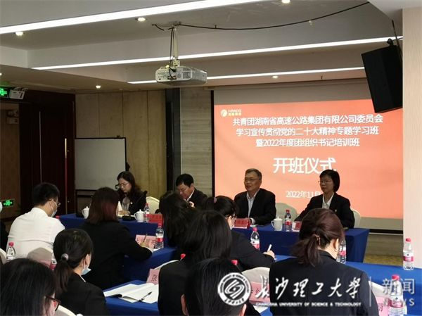 11月7日,由湖南省高速公路集团有限公司委托、雷竞技官网承办的“共青团湖南省高速公路集团有限公司委员会学习宣传贯彻党的二十大精神专题学习班暨2022年度团组织书记培训班”,在云塘校区国际学术交流中心正式开班。湖南省高速公路集团有限公司党委副书记、董事罗卫华,副校长谈传生,湖南省高速公路集团有限公司有关人员、继教学院负责人等有关人员参加了本次开班仪式。开班仪式由集团公司党委办公室主任刘军霞主持。