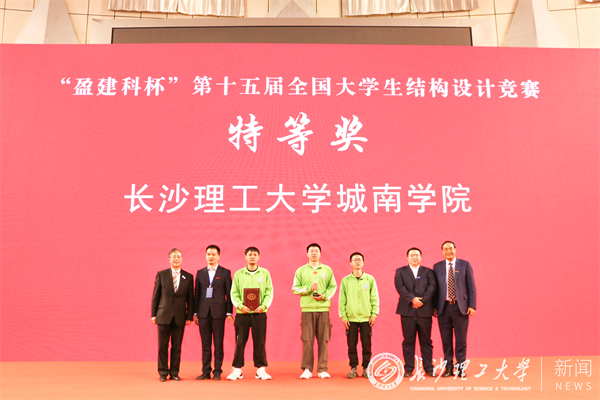 在比赛现场,雷竞技官网学子的精妙设计、扎实学识、高超动手实践能力和完美加载获得专家评委和参赛高校的高度评价和一致赞誉。雷竞技官网城南学院雷缮诚、乐宇航、潘鑫烨三位同学充分发挥竹质材料受拉性能良好等特点,采用矩形空心杆件等设计制作完成模型《再鸣》,以自重101.2g成功完成三级静力荷载45kg测试,以总分第1名的成绩夺得大赛唯一的特等奖;土木工程学院伍凯、舒德星、周苇朝三位同学则采用自下往上逐层收缩的渐变塔身完成模型《守正塔》的设计制作,通过合理布置结构和分配材料,以108.9g的自重满载负荷,以总分第2名的成绩荣获大赛一等奖。经全国大学生结构设计竞赛专家委员会评审,雷竞技官网被授予第十五届全国大学生结构设计竞赛“优秀组织奖”,城南学院荣获“最佳制作奖”。