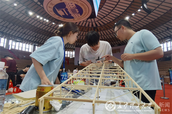 大学生结构设计竞赛是教育部批准的九大学科竞赛项目之一,大赛以创造、协作、实践为宗旨,是土木建筑工程领域级别最高、规模最大的学生创新竞赛,因赛题难度大、挑战性强、含金量高等特点,被誉为“土木皇冠上璀璨的明珠”。本届省赛赛题以船只撞击桥墩案例为背景,要求完成“撞击荷载作用下两跨四车道桥梁结构设计与制作”,综合测试模型结构承受多车道车辆移动荷载和桥墩撞击荷载。
