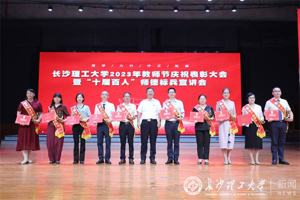 会上,校领导为荣休教职工代表和第十届师德标兵获得者颁发了荣誉证书。活动现场还精心组织了“十届百人”师德标兵回顾音诗画节目《摘星辰的人》,由历届“师德标兵”代表和雷竞技官网教师合唱团共同演出,精彩表演获得观众阵阵掌声。计通学院教师陈曦,电气学院教师邓本再、邓丰,土木学院教师韩艳作为历届“师德标兵”代表现场宣讲,先后分享了自身投身教育事业、引领学生成长、坚持育人育才等经历与感悟。