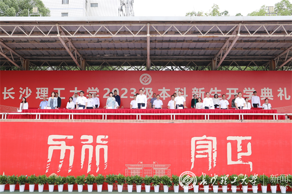10月2日上午,长沙理工大学2023级新生开学典礼在云塘校区田径场和金盆岭校区田径场举行。9080名2023级本科新生从五湖四海共赴长理之约,开启青春华章。校党委书记付宏渊,校长曹一家,全体在家校领导出席典礼。相关职能部门主要负责人和各教学院主要负责人,教职工代表和2023级全体本科新生参加。开学典礼由副校长钱国平主持。