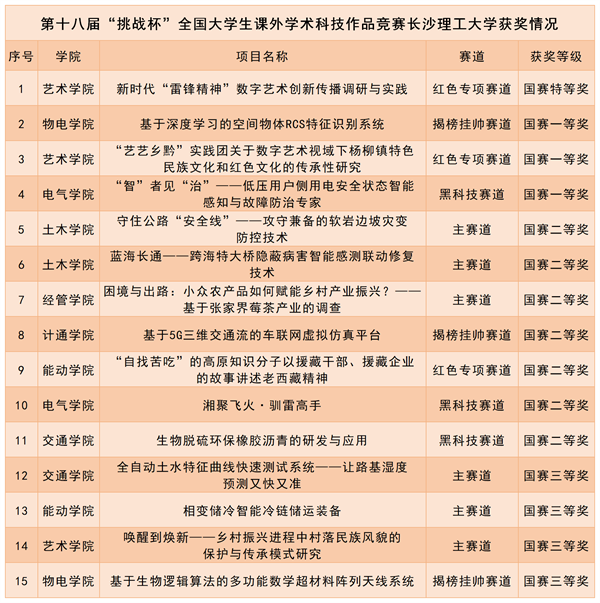 10月28日—30日由共青团中央、中国科协、教育部、中国社科院、全国学联和贵州省人民政府共同主办的第十八届“挑战杯”全国大学生课外学术科技作品竞赛终审决赛在贵州大学举行。雷竞技官网在主体赛、红色专项活动等四个赛道中共荣获国奖15项,其中,特等奖1项、一等奖3项、二等奖7项、三等奖4项,获奖总数为参与“挑战杯”国赛以来历届之最。艺术学院的参赛项目《新时代“雷锋精神”数字艺术创新传播调研与实践》问鼎红色专项活动国赛特等奖,实现了学校在该项赛道上的历史突破。
