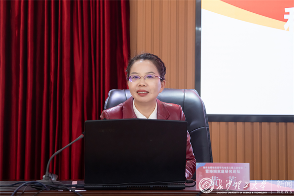 黄芳以《与党同心 跟党奋进 在新征程上谱写湖南妇女事业发展新篇章》为题,向大家传达学习了习近平总书记同全国妇联新一届领导班子成员集体谈话时的重要讲话精神及中国妇女十三大主要会议精神,介绍了湖南代表团参会情况等。她强调,省婚姻家庭研究会要提高政治站位,坚持党对婚姻家庭研究事业的领导,深入学习贯彻习近平总书记关于注重家庭家教家风建设的重要论述和中国妇女十三大精神,紧紧围绕“国之大者”和省妇联重点工作,结合学习贯彻习近平新时代中国特色社会主义思想主题教育,敏锐捕捉社会发展脉搏,增强解决婚姻家庭问题的紧迫感。她强调,省婚姻家庭研究会要坚持理论联系实际,坚持围绕中心、服务大局,围绕新时期婚姻家庭的新特点和新问题开展深入研究,为推动全省婚姻家庭工作高质量发展作出新贡献;要充分发挥智库作用,为推进婚姻家庭中的男女平等、建设文明家庭提供理论指导和智力支持;要身体力行践行新时代家庭观,建立完善促进男女平等和妇女全面发展的家庭政策体系,构建男女平等、和睦、文明的婚姻家庭关系,积极推动全社会形成社会主义家庭文明新风尚,为推进新时代的婚姻家庭建设作出独特贡献。