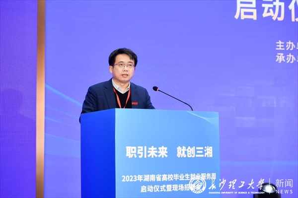 副校长钱国平在致辞中表示,毕业生就业事关千万家庭幸福,是社会稳定的重要保障,是我省各高校工作的重中之重。长沙理工大学会持续做好大学生就业指导服务工作,奋力彰显高校担当,为我省高校毕业生就业创业工作贡献更多长理力量。