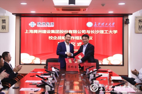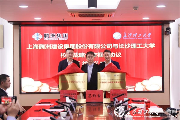 会上,双方签署了校企战略合作框架协议,为共建成立的“产教融合协同育人腾洲基地”“洞庭湖水环境治理与生态修复湖南省重点实验室腾洲分中心”揭牌。