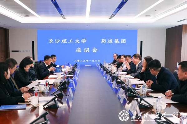 在蜀道集团,付宏渊一行参观了企业文化展厅,与集团董事长张正红进行了交流,与集团公司副总经理杨如刚等领导举行座谈。杨如刚表示,蜀道集团与长沙理工大学合作渊源深厚,当下集团正全力加快传统交通基础设施转型升级,亟需长沙理工大学的人才智力支持,希望双方继续加强产学研合作,整合资源、优势互补,共同打造校企合作的典范。付宏渊对蜀道集团高质量发展取得的成就表示祝贺。他表示,蜀道集团作为交通强国建设的排头兵,是服务西部、推动四川省高质量发展的先行者,也是长沙理工大学毕业生理想的就业平台、成长平台。长沙理工大学与蜀道集团有着坚实的合作基础,希望双方更加聚焦新质生产力和新兴产业升级发展中的前瞻性技术问题,在人才供需对接、科研成果转化等方面进一步加强合作,探索产学研用融合新范式。