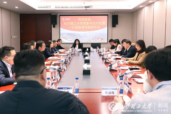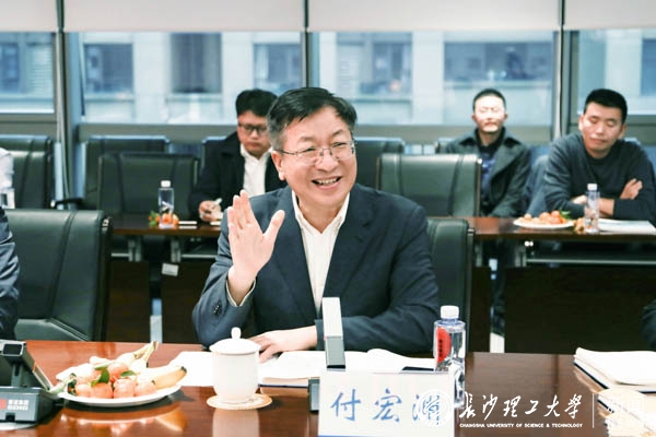 在中交西部投资有限公司,党委书记、董事长陈宁,中交集团西南区域总部党委书记、副总经理康卓对付宏渊一行到访表示欢迎,并介绍了中交在西部区域五省生产经营情况及未来发展规划。双方就建立常态化合作机制,充分发挥彼此优势,进一步加强产学研用协同、科技成果转化、人才培养、培训服务等领域的深度合作,共同推动人才链、产业链融合进行了深入交流。付宏渊感谢中交集团一直以来对学校建设发展的大力支持。他表示,四川作为国家战略腹地和战略产业备份基地,急需大批具有创新精神的优秀人才。长沙理工大学深入贯彻党的二十届三中全会精神和省委十二届八次全会精神,把准深化高等教育改革的时代要求,强化招生指标的战略导向,优化生源布局,加快创新型人才培养,希望双方以人才为纽带,落实落细科技创新与成果转化合作,为国家战略新兴产业和新质生产力发展贡献力量。