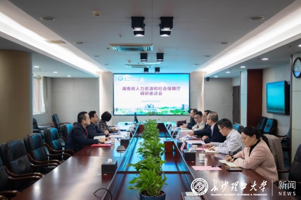 3月18日上午,湖南省人力资源和社会保障厅党组成员、副厅长周光明一行来校调研指导工作。校党委委员、副校长刘朝晖出席座谈会。湖南省人力资源和社会保障厅专业技术人员管理处负责人陪同调研,校人事处和继续教育学院主要负责人、专家代表参加座谈会。