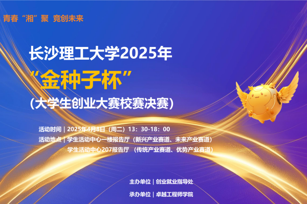 4月8日,学校2025年“金种子杯”大学生创业大赛校赛暨颁奖典礼在云塘校区学生活动中心举行。校党委副书记方琼出席活动并颁奖,湖南兴元科技股份有限公司副总经理吴家强、湖南产融信息科技有限公司董事长王华、湖南智创未来教育科技有限公司董事长成忠、财信产业基金投资经理程顺康、全国万名优秀创新创业导师游勇、北京橡树果教育科技有限公司董事长朱建炜、长沙市云研网络科技有限公司联合创始人夏娟,学校相关职能部门负责人、各学院师生代表出席活动。