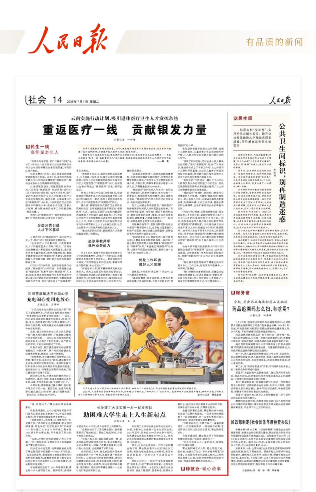 7月1日,《人民日报》刊发文章《长沙理工大学实施一对一就业帮扶 助困难大学生走上人生新起点》,聚焦报道学校实施一对一就业帮扶,全力做好稳就业工作的系列暖心举措。