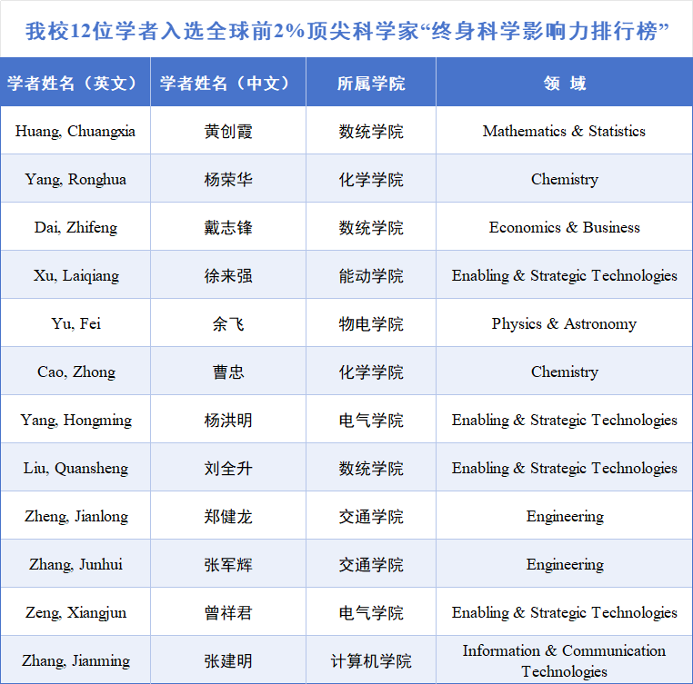 近日,美国斯坦福大学和国际权威学术出版机构爱思唯尔数据库(Elsevier Data Repository)共同发布2025年全球前2%顶尖科学家榜单(World's Top 2% Scientists)。雷竞技官网12位学者入选全球前2%顶尖科学家“终身科学影响力排行榜”;51位学者入选全球前2%顶尖科学家“2025年度科学影响力排行榜”。